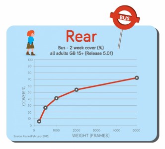 Z trzech typów nośników autobusowych: Superside (paski po obu bokach pojazdu), T-side (reklama od strony drzwi autobusu) i Rear (reklama na tyle autobusu), największy potencjał budowania zasięgu ma ten ostatni. Co więcej, kampanie zrealizowane na tej reklamie budują zasięg tylko trochę mniejszy niż te, które są oparte wyłącznie na billboardzie 6x3 m lub nośniku citylight!