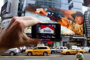 „Również połączenie Out of Home z Mobile Augmented Reality ma bardzo duży potencjał” – przekonuje Dariusz Sawicki. „Smartfon ma już prawie każdy. Podczas oczekiwania na przystanku, spaceru ulicami miasta czy stania w korku możemy wyjąć telefon i zupełnie inaczej doświadczać reklamy i komunikację outdoorową”. Często to nowe doświadczenie może okazać się zaskakujące. Tak jest w przypadku aplikacji stworzonej przez organizację Public Ad Campaign, która lobbuje przeciwko reklamie zewnętrznej. Aplikacja ta nakłada na obraz reklam na nowojorskim Time Square ich przerobione wersje, na przykład nazwę marki papierosów Marlboro zastępuję napisem „Oddychaj”.