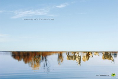 Estetyka minimalizmu święci tryumfy nie tylko w dziedzinie sztuki współczesnej i stylu życia – siłę przekazu opartego na braku treści wykorzystała indyjska firma Gail Gas, dostawca naturalnego gazu do użytku domowego, komercyjnego i przemysłowego. Reklama pod hasłem: Overdependence on fossil fuel will turn everything into fossils zachęca do wyboru odnawialnych źródeł energii, wymownie ukazując konsekwencje nieprzemyślanej eksploatacji zasobów naturalnych – wizję przyszłości, w której świat przyrody pozostaje jedynie wspomnieniem.