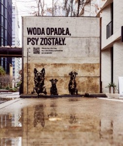 W ramach kampanii w trzech dużych miastach w Polsce zostaną umieszczone mury z zalanych schronisk. Pierwsza instalacja pojawiła się w Warszawie, na terenie Browarów Warszawskich, przy ul. Krochmalnej 61. Linia wody odwzorowana przez grafików ukazuje, do jakiego poziomu dotarła powódź. Umieszczone na murze i odpowiednio przeskalowane podobizny prawdziwych psów mieszkających w zalanych schroniskach obrazują, jak niebezpieczna była to dla nich sytuacja, bezpośrednio grożąca utonięciem. Wykorzystanie prawdziwych murów ze zniszczonych schronisk podkreśla dramat zwierząt. Obok każdego muru umieszczony jest kod QR, który po zeskanowaniu w łatwy i szybki sposób przenosi nas na stronę portalu Pomagam.pl, gdzie prowadzona jest zbiórka. Każdy chętny może wesprzeć bezdomne psy w zależności od swoich możliwości.